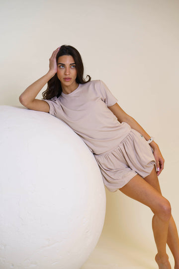 The silhouettes are relaxed and easy to wear, with soft shapes and clean lines that fit naturally into everyday life. Each piece is made in our atelier with care, from the first sketch to the final stitch, with a focus on creating clothing that feels good, lasts, and becomes part of your routine.