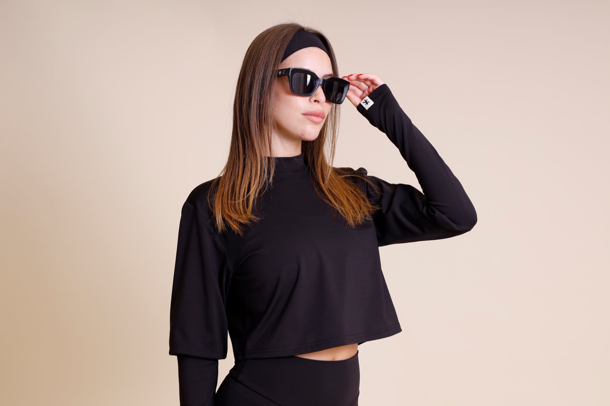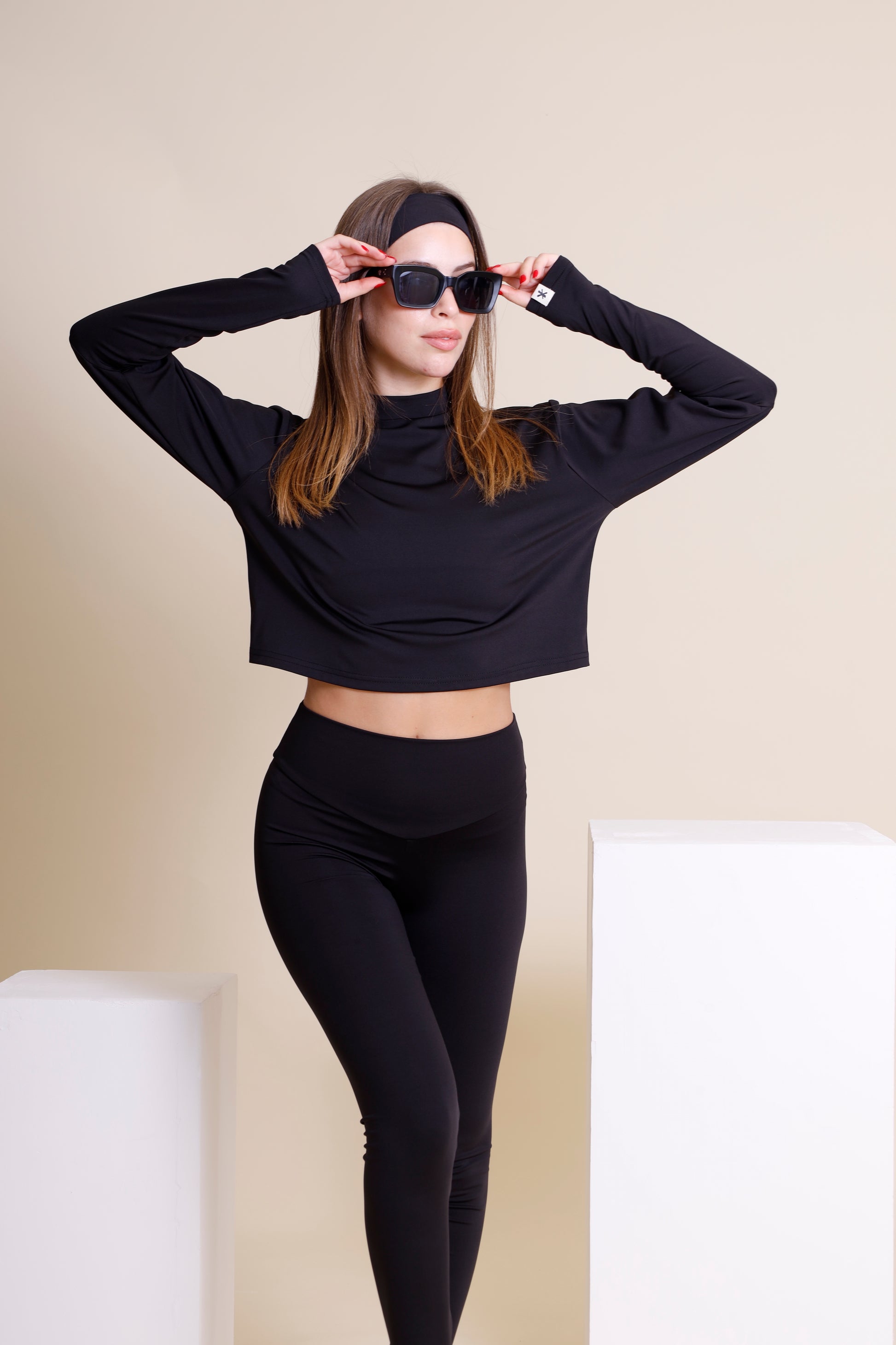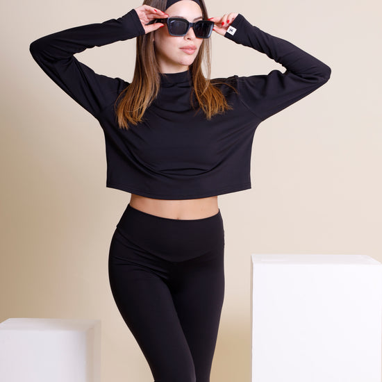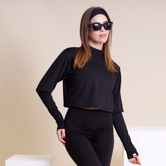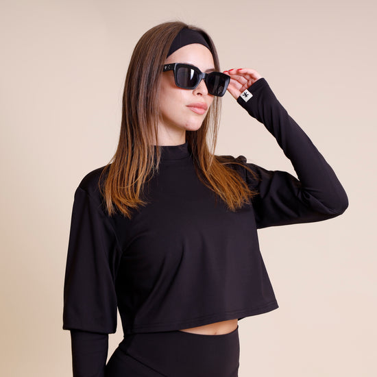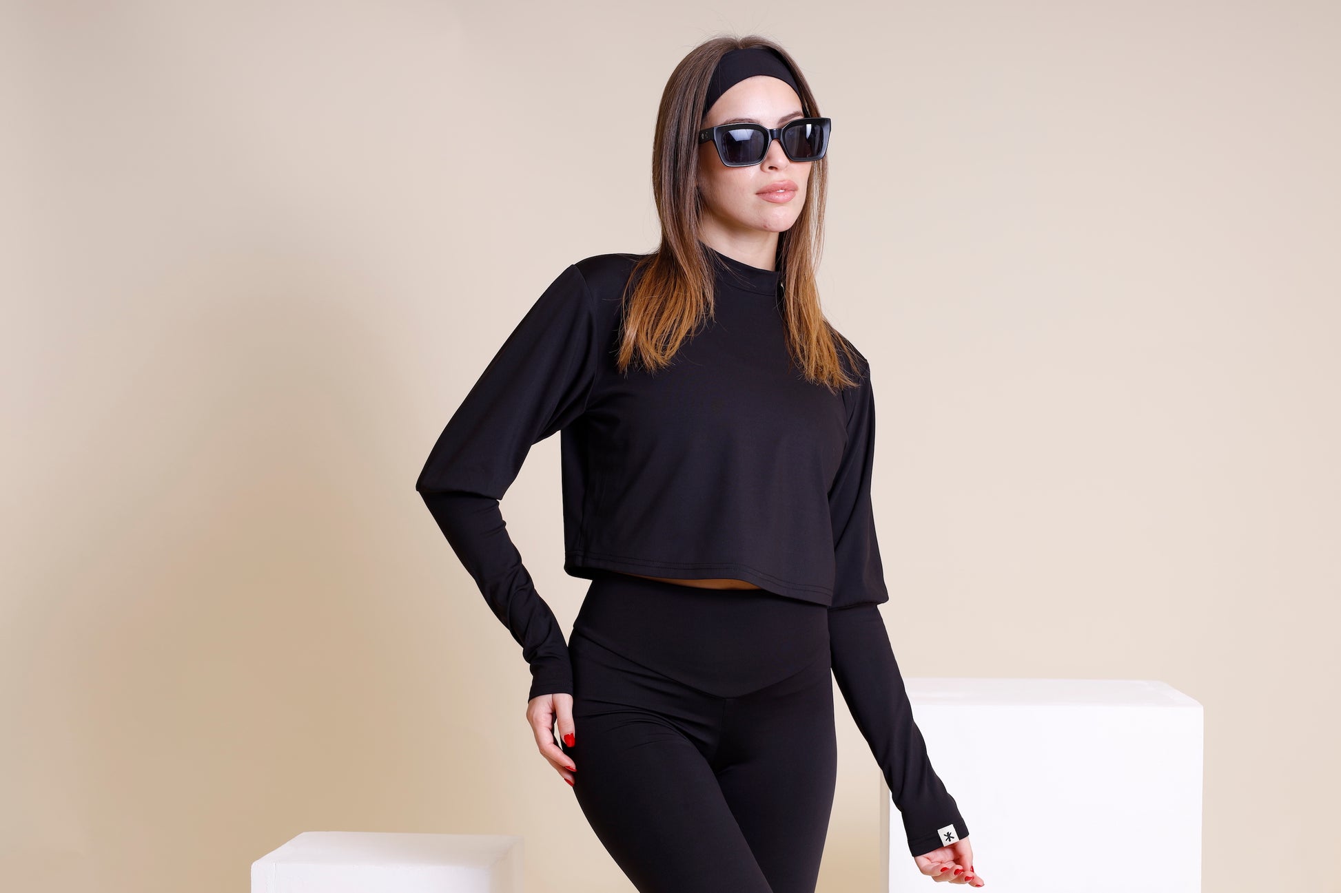 Relaxed structure meets refined comfort. This cropped oversized top is cut with a boxy silhouette and detailed extended sleeves that create a layered look without the bulk. Designed in a soft, flexible fabric that moves effortlessly with you - it’s the perfect piece to style casually for everyday ease.