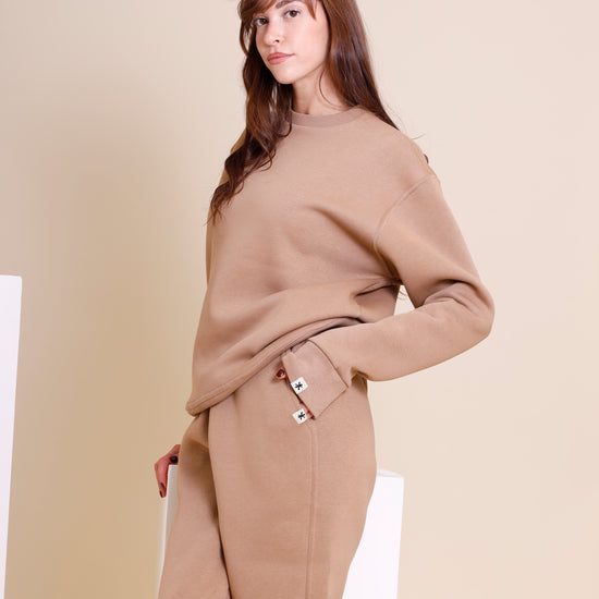 An elevated take on off-duty comfort. This oversized sweatshirt is crafted from a premium thick fleece blend that feels soft on the outside and plush on the inside. Designed with dropped shoulders, a relaxed drape, and a clean crew neckline for a refined yet cozy feel. Perfect for layering or wearing solo when temperatures drop.