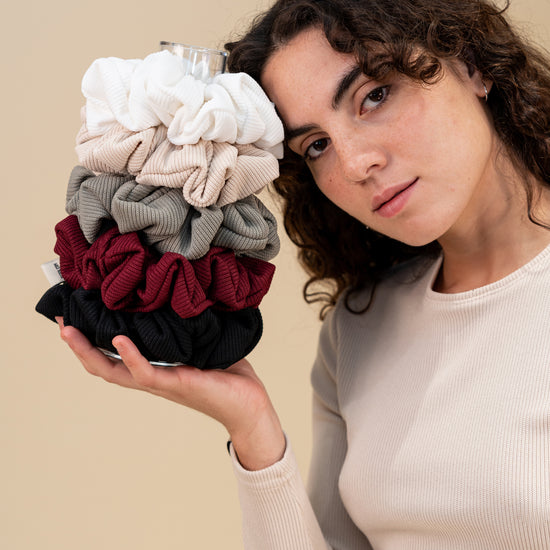 Step up your hair game with our Ribbed Scrunchies! Made from snug, ribbed fabric, they hold your hair perfectly without any tug or pull. They come in cool shades to match any outfit, whether you’re keeping it casual or dressing up. The strong elastic keeps your style locked in, making these scrunchies a must-have for every look. Easy on your hair and easy on the eyes, they’re the perfect addition to your daily essentials.